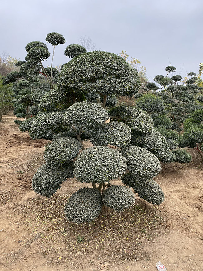 總之,景觀造型樹作為園藝藝術的重要組成部分,通過巧妙的園藝手段,將樹木塑造出各種優美的形態,為人們帶來視覺上的享受和心靈上的愉悅。在城市綠化、公園景觀、旅游區等領域廣泛應用,展現出其獨特的美學價值和生態價值。