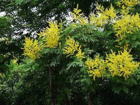 黃山欒樹也叫全緣欒樹、復羽葉欒樹,樹高可長至20多米,黃山欒樹適應能力強、生長速度快、樹型高大優美,夏末秋初開花時分黃色花朵灑滿樹冠,深秋紅色果實猶如一串串燈籠,與黃色秋葉相間,觀賞性極高,非常適合用來制作庭蔭樹、行道樹,也可以用來作工礦廠區的綠化美化樹種。